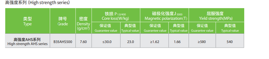 ● 高效高强度系列:磁感、铁损、强度三者综合性能优异;